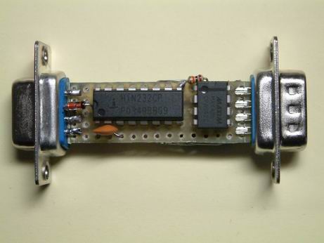 RS232-485转换器主要包括了电源、232电平转换、485电路三部分。本电路的232电平转换电路采用了NIH232或者也可以直接使用MAX232集成电路,485电路采用了MAX485集成电路。为了使用方便,电源部分设计成无源方式,整个电路的供电直接从PC机的RS232接口中的DTR(4脚)和RTS(7脚)窃取。PC串口每根线可以提供大约9mA的电流,因此两根线提供的电流足够供给这个电路使用了。经实验,本电路只使用其中一条线也能够正常工作。使用本电路需注意PC程序必须使串口的DTR和RTS输出高电平,经过D3稳压后得到VCC,经过实际测试,VCC电压大约在4.7V左右。因此,电路中要说D3起的作用是稳压还不如说是限压功能。 MAX485是通过两个引脚RE(2脚)和DE(3脚)来控制数据的输入和输出。当RE为低电平时,MAX485数据输入有效;当DE为高电平时,MAX485数据输出有效。在半双工使用中,通常可以将这两个脚直接相连,然后由PC或者单片机输出的高低电平就可以让MAX485在接收和发送状态之间转换了。由于本电路DTR和RTS都用于了电路供电,因此使用TX线和HIN232的另外一个通道及Q1来控制MAX485的状态切换。平时NIH232的9脚输出高电平,经Q1倒相后,使MAX485的RE和DE为低电平而处于数据接收状态。当PC机发送数据时,NIH232的9脚输出低电平,经Q1倒相后,使MAX485的RE和DE为高电平而处于数据发送状态。 电路比较简单,下面是我用万用实验板制作的实物图,供大家参考。
