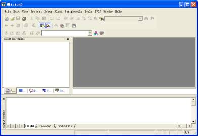 其中菜单栏为您提高了各种操作菜单,比如编辑器操作、工程维护、开发工具选项设置、程序调试、窗体选择及操作、在线帮助。工具栏按钮可以快速执行uVision3命令。或许与您打开的Keil C51界面不一样,但您别着急,这是因为启动uVision3后,uVision3总是打开用户前一次正确处理的工程。