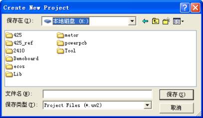 2.点击菜单的Project选项,在弹出的下拉菜单中选择New Project命令,建立一个新的uVision3工程,这时可以看到如图2.6所示的项目文件保存对话框。在这里需要完成下列事情: