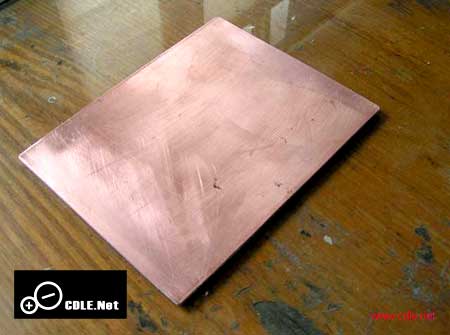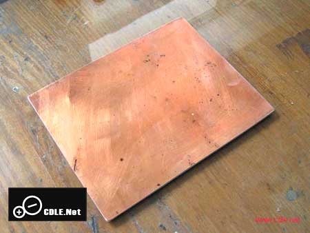 转印前要处理好PCB铜版,这是制作成功的关键之一,先将敷铜版两面擦光,