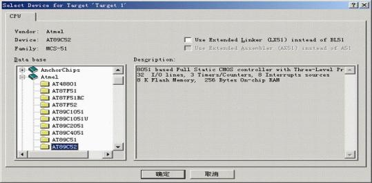 如下图所示,然后点击保存. 3)这时会弹出一个对话框,要求你选择单片机的型号,你可以根据你使用的单片机来选择,keil c51几乎支持所有的51核的单片机,我这里还是以大家用的比较多的Atmel 的89C51来说明,如下图所示,选择89C51之后,右边栏是对这个单片机的基本的说明,然后点击确定.
