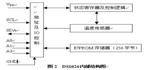 DS1624是美国DALLAS公司生产的集成了测量系统和存储器于一体的芯片。数字接口电路简单,与I2C总线兼容,且可以使用一片控制器控制多达8片的DS1624。其数字温度输出达13位,精度为0.03125℃。DS1624可工作在最低2.7V电压下,适用于低功耗应用系统。