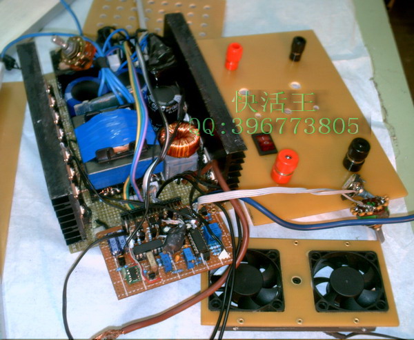此机具有输出短路保护,输出电压超高保护(防止击穿烧坏后级功率器件),散热器热风扇自动启动,散热器冷风扇自动停,MOS管温度超高自动停止输出保护,电池电量低欠电压报警。本来想在前级加防反接措施,但是没有买到合适的保险丝或继电器。不知那位高手有没有除保险丝和继电器之外的可靠的防反接方法,我想请教请教!谢谢!