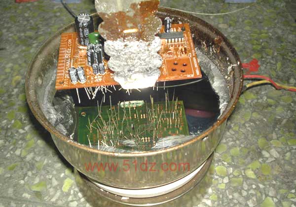 | 选择分类:当前分类——电子入门 相关联或者相类似的文章: 识别色环电阻的阻值...(1141) 应用资料-数字电路IC全系列名称查询表(1136) 电子制作专用微型模块盒子(1132) DS1820测温原理(1129) 七仙女离婚(1127) 电容器的参数与分类(1126) 场效应管工作原理(1125) 面试时要问清楚的几个问题 (1118) 几句代码实现控制摄像头(转)(1117) 了解隔离变压器(1116) STC单片机选型指南(1111) 电烙铁的妙用(1109) 自制PIC单片机编程器(1105) 麻烦的USB硬盘和延长线(电子知识)(1105) 如何学好电子技术(致初学者)[转(1093) 性能可靠的60W石英灯用电子变压器(1091) 小功率充电器的设计(1084) 做梦机的制作(1078) 家长老师必看:《玩,也是学习!》(1076) 热列庆祝本站电子实验套件专利正式授权(1074) 首页 前页 后页 尾页 本站推荐: | 电子线路板的简易加工图片展 如果产品生产的数量较少,大型的电子厂家就不愿意为你生产加工。即使愿意为你加工,你的加工费将因为数量小变得非常非常的昂贵,甚至仅仅加工费就远远超过成品板的价值。 但是,有时又需要生产几十、几百块板,难道你用电烙铁一个一个的焊接?那样成本也会很贵。 有没有一个低成本的方法呢?有,只要有电饭煲就可以了。请看以下组图: 先将电子元件插在电路板上并放好,注意先插小元件,注意压平元件; ![]() 插好的板一定要放在稳妥的地方,防止碰翻元件掉落; ![]() 将焊锡条放入锅中用电炉加热到全部熔化,有条件的可以安装自动温控器,也可以测量温度,温度一般在250-350度之间为宜。 如果条件都没有的话,就只有通过经验来决定了。大家可以看见图中熔化的锡象镜子一样反光,有清晰的倒影。(用干硬纸皮拨开锡面一个空间)。 ![]() 还需要松香水。松香水就是将松香放入酒精中熔解即可。酒精易挥发,注意控制浓度好象是浓茶的样子即可。浓点、淡点问题都不是很大,请根据实际经验定。 ![]() 先用金属的夹子(卖馒头面包的几块钱的就可以用,没必要买专业的)夹住板先浸一个松香水,注意松香水不要打湿电路板正面。 ![]() 再将板放进熔化的锡炉,注意不要紧张,虽然下面有三百度的高温,但你的手在十几个厘米外,非常安全的。 ![]() 先拨开锡面的锡渣,让线路板底面均匀接触锡面,此时有吱吱声和烟雾。将焊接时间控制在2到3秒左右。 ![]() 拿起线路板,看看,效果非常好,接着做下一个吧! ![]() 下图中有一块中有很大的连接,锡陀,这是焊接时间偏短或者锡炉温度低的原因。 ![]() 如果线路烫起泡,则是焊的时间偏长或者锡炉温度高。焊好的板,元件不会掉了,可以乱放。 ![]() 以上动作并不难,很简单,试一下就会了,但是,请大家注意安全,锡炉本身要放在非常稳妥的地方,注意什么东西都不要掉进锡炉(特别是浸板时要注意,防止板掉进锡炉。 声明:本站不对大家的模仿带来的任何损失负责,请小心小心再小心的操作! 参考经验: 选用口径小的锡炉,可以一次投入较少的焊锡(一般要保证有5CM左右或者更深的深度)。否则,可能第一次要放入400元以上的焊锡哟! 锡炉加热和冷却的过程分别需要30分钟到2个小时的时间之久,所以,请提前做好准备。 有条件的可以用自动温度控制器控制锡炉温度。本站有几个转让,去商城特价处理区找看还有没有。 以上图说明,用电炉也可以当作锡炉完成大量的焊接工作。欢迎转载,请常来本站。 1、 本站不保证以上观点正确,就算是本站原创作品,本站也不保证内容正确。 2、如果您拥有本文版权,并且不想在本站转载,请书面通知本站立即删除并且向您公开道歉! |
