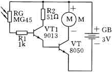 | 选择分类:当前分类——电子入门 相关联或者相类似的文章: 正确使用电饭锅(518) 调制电路与解调电路 (516) 怎样用多个开关控制一盏灯(507) 测电流法(505) 器件的筛选与检测(505) 防抖动轻触开关(503) 单片机可编程广播自动播出系统(502) 巧购电子元器件(502) 看过别笑 千元自制投影机到底啥模样(500) 如何DIY 投影机?(500) 学电子----电子元件介绍(500) 新手看图纸自制DIY投影机(500) 315M遥控电路的设计(500) 如何DIY 投影机?新手知识讲座!(500) 只要1750元 穷人也能DIY投影机[图](500) 学习电子技术是不是真的那么重要?(499) 手电筒电路(496) 断丝日光灯废管的利用(494) 单元电路图识图方法(492) 电容降压的工作原理(491) 首页 前页 后页 尾页 本站推荐: | 光电控制电路 在光电自动控制电路中,可以选用光敏电阻器做为光电传感元件。通常光敏电阻器,例如MG45有光照射时的亮阻2~10kΩ,远大于偏置电阻器R的电阻值,显然不能产生维持VT饱和导通所需强度的基极电流。因此,需要先用一支三极管进行电流放大,再驱动开关三极管工作。 ![]() 光电自动控制电路 见图。VT1和VT2接成类似复合管电路形式,VT1的发射极电流也是VT2的基极电流,R2既是VT1的负载电阻器又是VT2的基极限流电阻器。因此,当VT1基极输入微弱的电流(0.1mA),可以控制末级VT2较强电流——驱动电动机运转电流(500mA)的变化。VT1选用小功率NPN型硅管9013,hfe≈200。同前计算方法,维持两管同时饱和导通时VT1基极偏置电阻器R1约为3.3kΩ,减去光敏电阻器RG亮阻2kΩ,限流电阻器R1实取1kΩ。光敏传感器也可以采用光敏二极管,使用时要注意极性,光敏二极管的负极接供电电源正极。光敏二极管对控制光线有方向性选择,且灵敏度较高,也不会产生强光照射后的疲劳现象。 1、 本站不保证以上观点正确,就算是本站原创作品,本站也不保证内容正确。 2、如果您拥有本文版权,并且不想在本站转载,请书面通知本站立即删除并且向您公开道歉! |