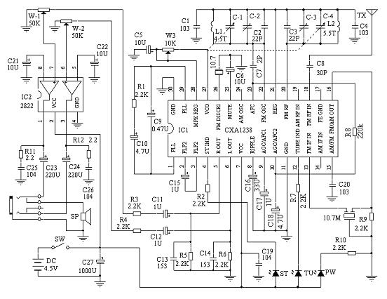 本站有两款收音机都采用了此芯片,因CXA1238独具的立体声解码功能能够实现立体声收音,为整体的设计增彩不少,它的宽电压适应范围和立体声指示及静噪功能也是其它芯片所力所不能及的。
