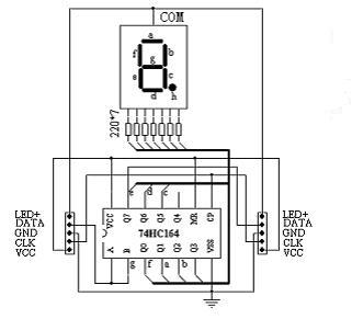 1寸数码管显示板(光板),每片0.5元。该板主要为单片机端口扩展用的,可以1级到多级的连接使用(本站曾经使用过四十多级给客户开发过产品)。使用1寸红色超亮共阳数码管,一个笔画由一个LED组成,所以+LED电源取5V即可。电阻和74HC164为贴片元件,体积小巧。板上有四级连接在一起,其中各级间已经预留有开口,如果不用四级,可以分别掰开使用(下面的图为已经掰开了一级),如果要使用四级以上的,也可以很方便的首尾相接起来使用。