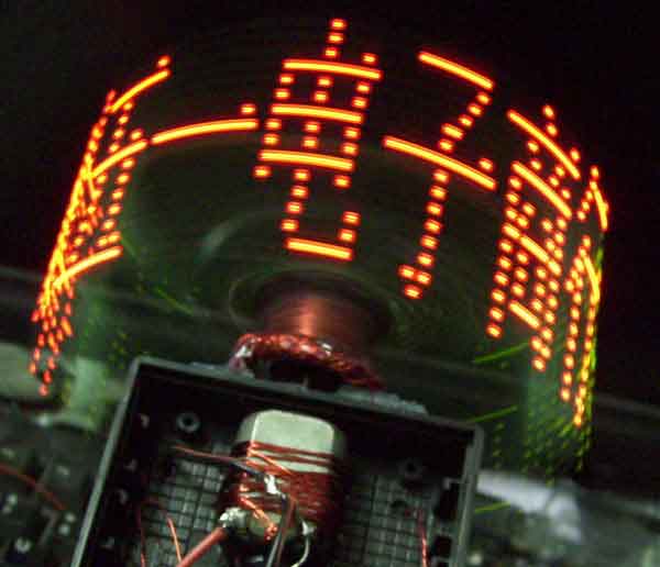 大家看到的图片中的文字是用电动机带动LED转动,用单片机控制LED点亮和熄灭来形成文字的,这些文字一看上去,就象悬浮在空中的文字,上下左右无牵无挂,给人以美好的回忆和享受。而对于电子爱好者来说,自己制作成功这样的作品,给你带来的开心和喜悦简置无法形容。 如果用于广告展示、产品介绍,既吸引人的眼球,这也算是宝贵的回报了。