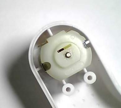 和前壳有对应的螺丝柱,可配合前壳固定电动机和电路板,设计有4节5号电池盒。 |