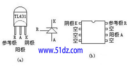 贴片TL431 ,贴片8脚。TL431是一种并联稳压集成电路。因其性能好、价格低,因此广泛应用在各种电源电路中。其封装形式与塑封三极管9013等相同,如图a所示。同类产品还有图b所示的双直插外形的。