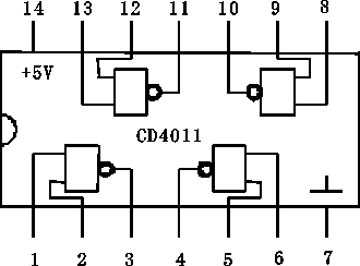 CD4011,四二输入与非门。贴片双列14脚,主要用于逻辑控制。CD4011,TC4011,CC4011,前面的字母不一样,表示生产的厂家不一样,功能一样。引脚功能图见上图。
