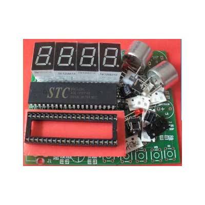 成品板上自带:超声波收发传感器、接收放大电路、四位LED数码显示、四位按键(四个按钮和蜂鸣器属于功能预留,程序中无定义),电源部分自带整流、滤波、稳压电路,允许交流7~15V或者直流9~16V输入,经过实际测试,测量范围可达27~250厘米,测量精度为1厘米。因为我们能提供完整的源程序,客户不但可以学习超声波测距的知识,还可以直接将这项技术用于产品开发,是不可多得的资料。