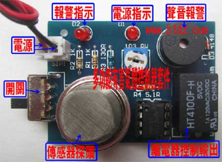 烟雾有毒有害气体检测报警器套件,简单实用,欢迎大家选用。本站也有配外壳的,配外壳的加多4元。