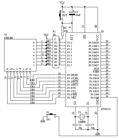(1). “★”在8X8LED点阵上显示图如下图所示