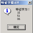 特征字:点击一下,会读出单片机的芯片的特征字,对于AT89S51单片机的特征字为:1E 51 06,出现的提示框如图3.3所示